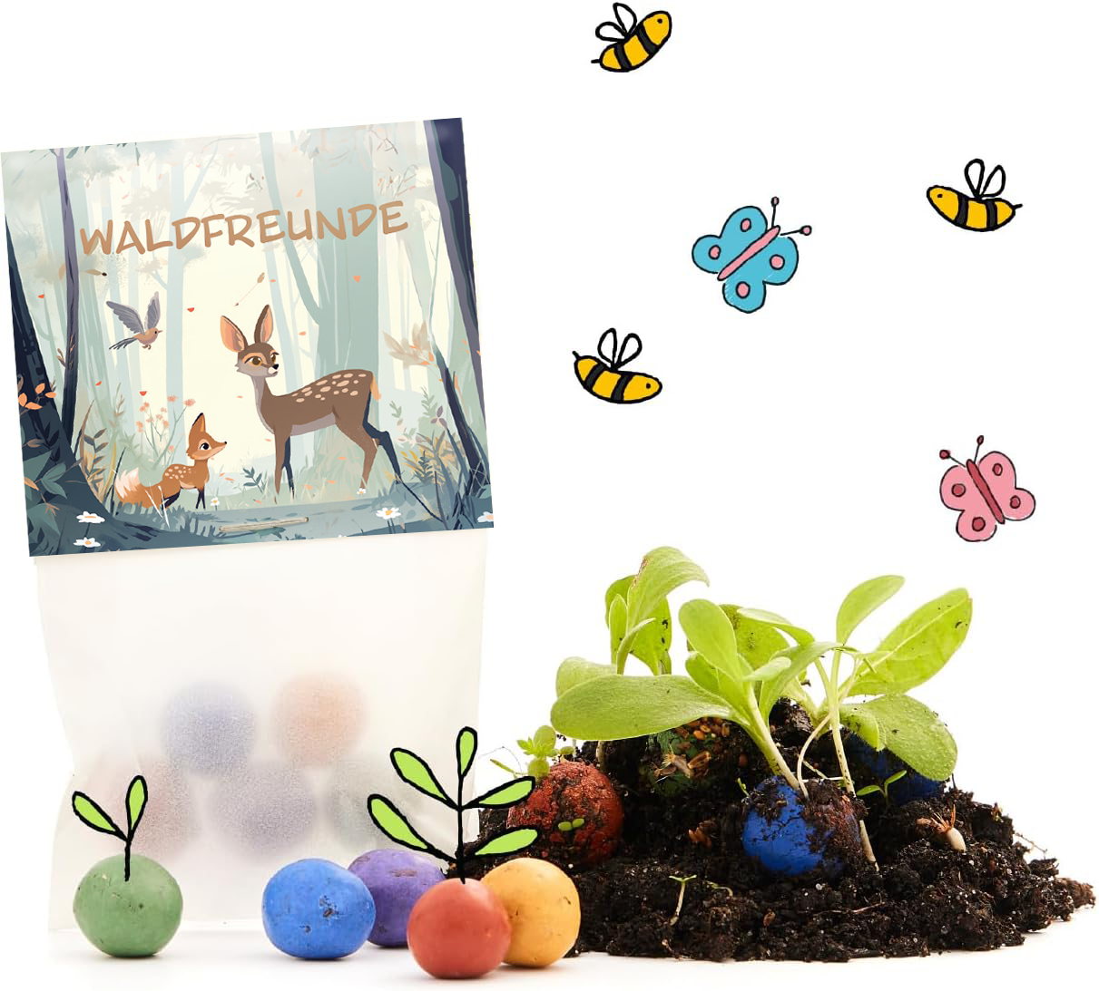 Ideales Mitgebsel für den Kindergeburtstag oder als Abschiedsgeschenk für die Kita: Enthält 10 liebevoll gestaltete Tütchen mit je 5 bunten Blumenmurmeln, aus denen eine Blumenwiese wächst – eine tolle Geschenkidee für kleine Partygäste oder den Kindergarten (Eine Blumenmurmel hat einen durchschnittlichen Durchmesser von 1,5 cm (+/-).)