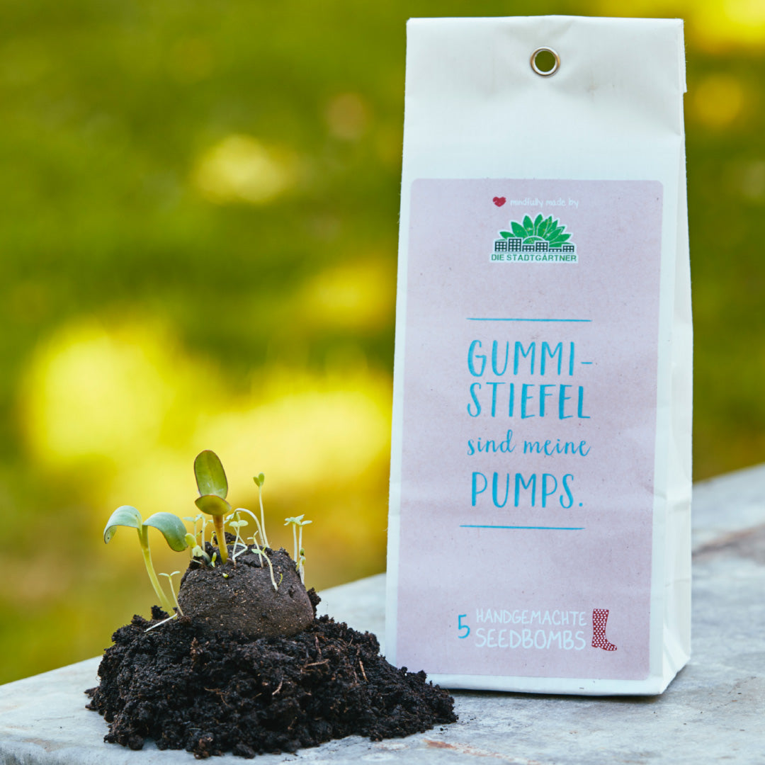 Für alle, die lieber Gummistiefel als Pumps tragen! 5 handgemachte & herrlich bunt blühende Samenbomben, die alle Schmetterlinge in der Umgebung wuschig machen. Die Seedbombs enthalten unter anderem Konrade, Kornblumen, Sommeraster und Goldlack.