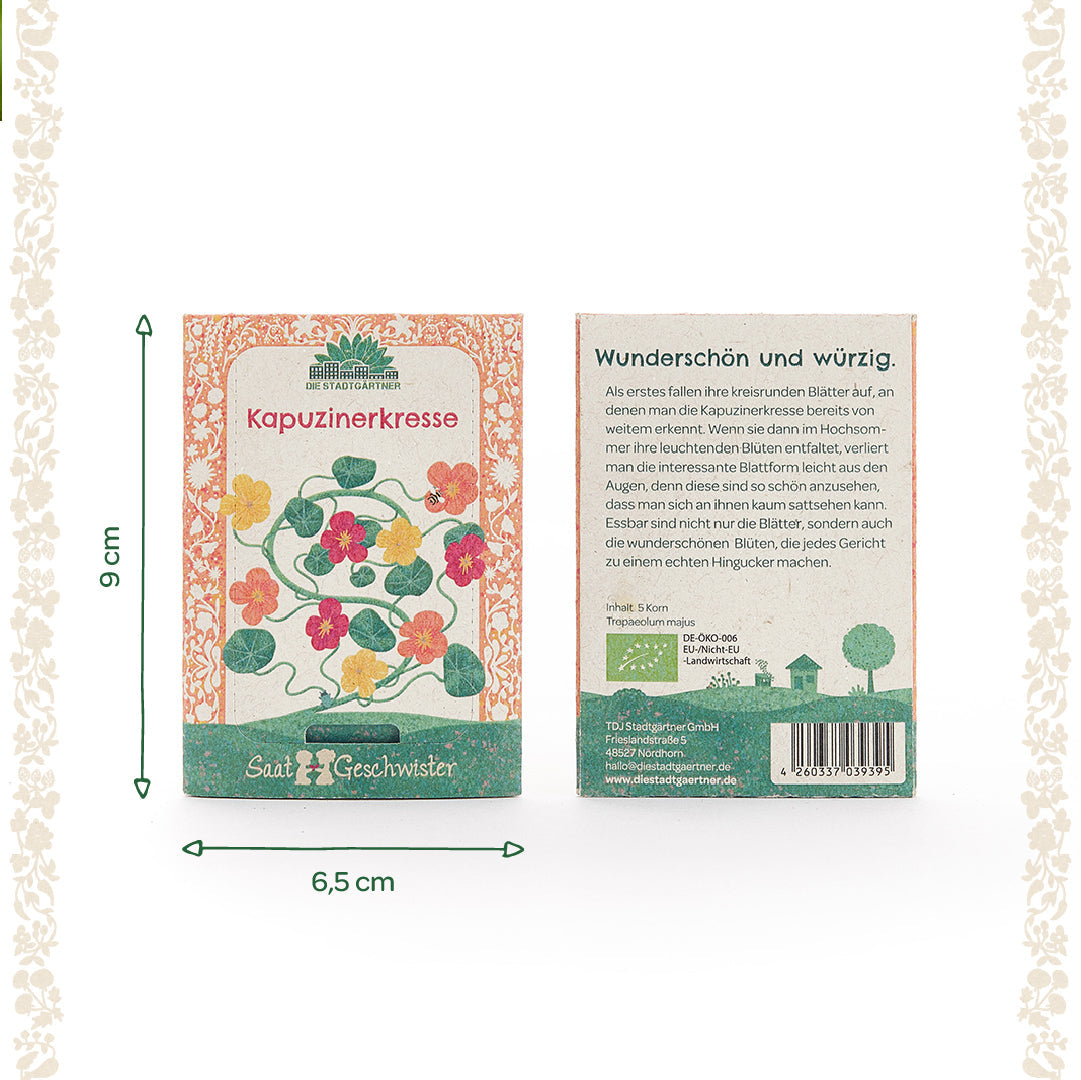 Eine besondere Geschenkidee: Das Kapuzinerkresse-Saatgut ist ein wunderschönes Geschenk für Gartenfreunde und Genießer. Ob als Mitbringsel, zum Geburtstag oder zu Weihnachten – es bringt leuchtende Blüten und Freude ins Zuhause.