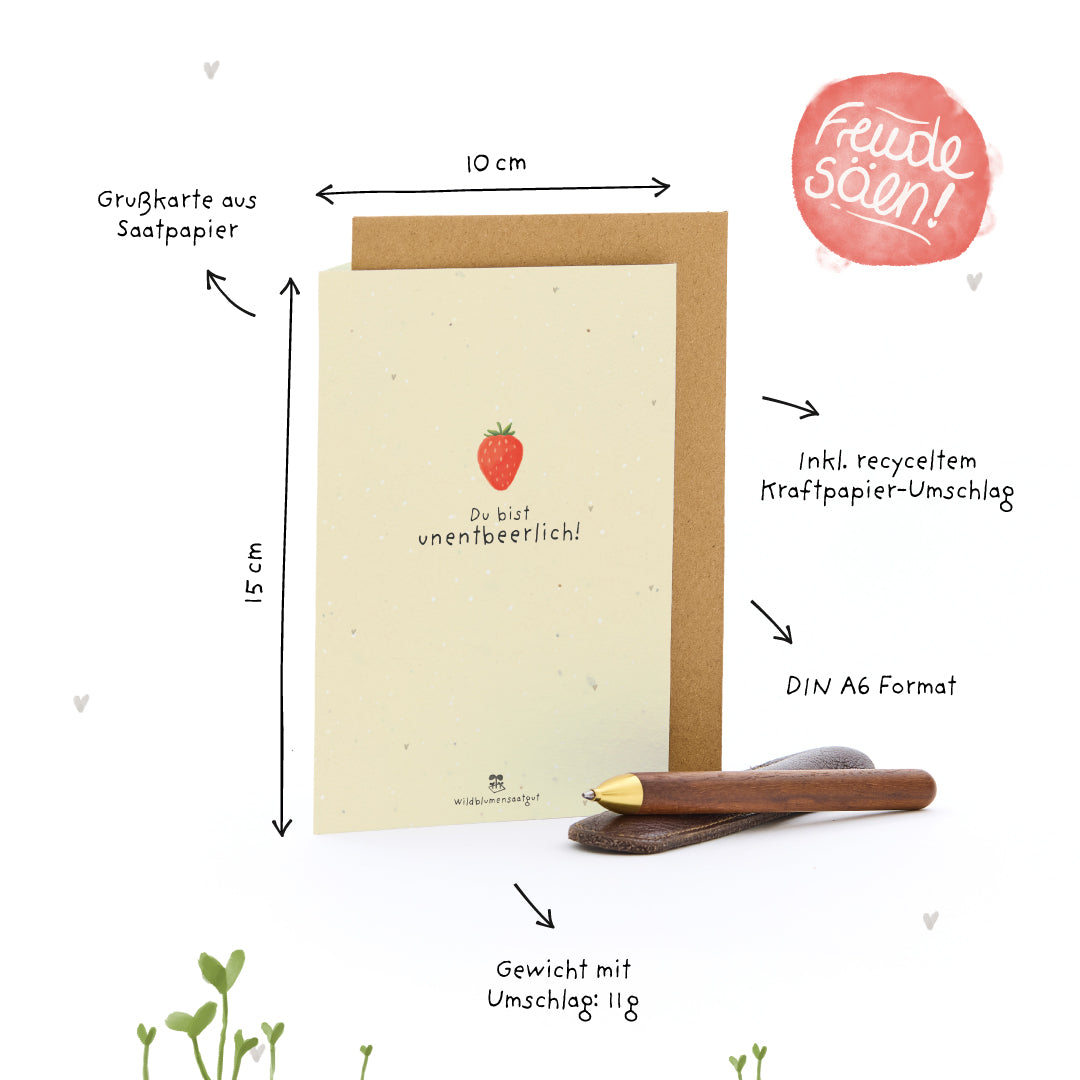 Nachhaltig: Die Karte ist aus kompostierbarem Saatpapier gefertigt, der Umschlag besteht aus recyceltem Kraftpapier - ein grüner Gruß, der Herzen berührt und die Umwelt schont.
