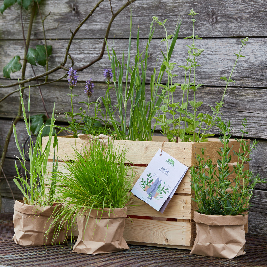 Die Pflanzen werden in der Holzkiste mit entsprechenden 'Setcards' geliefert. Mehr Informationen zu diesem Set und den enthaltenen Pflanzen findest du weiter unten auf dieser Seite. Sollte eine Pflanze kurzfristig nicht verfügbar sein, wird sie durch eine ähnliche Pflanze ersetzt.