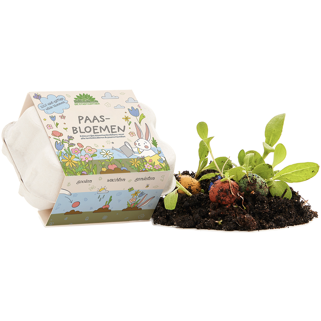 🐰 Paaseieren maar dan anders!: De kleine, kleurrijke bloemknikkers in het mini-eidoosje zijn voorzien van een kleurrijke paasbanderol en brengen potten en bloemperken tot leven.