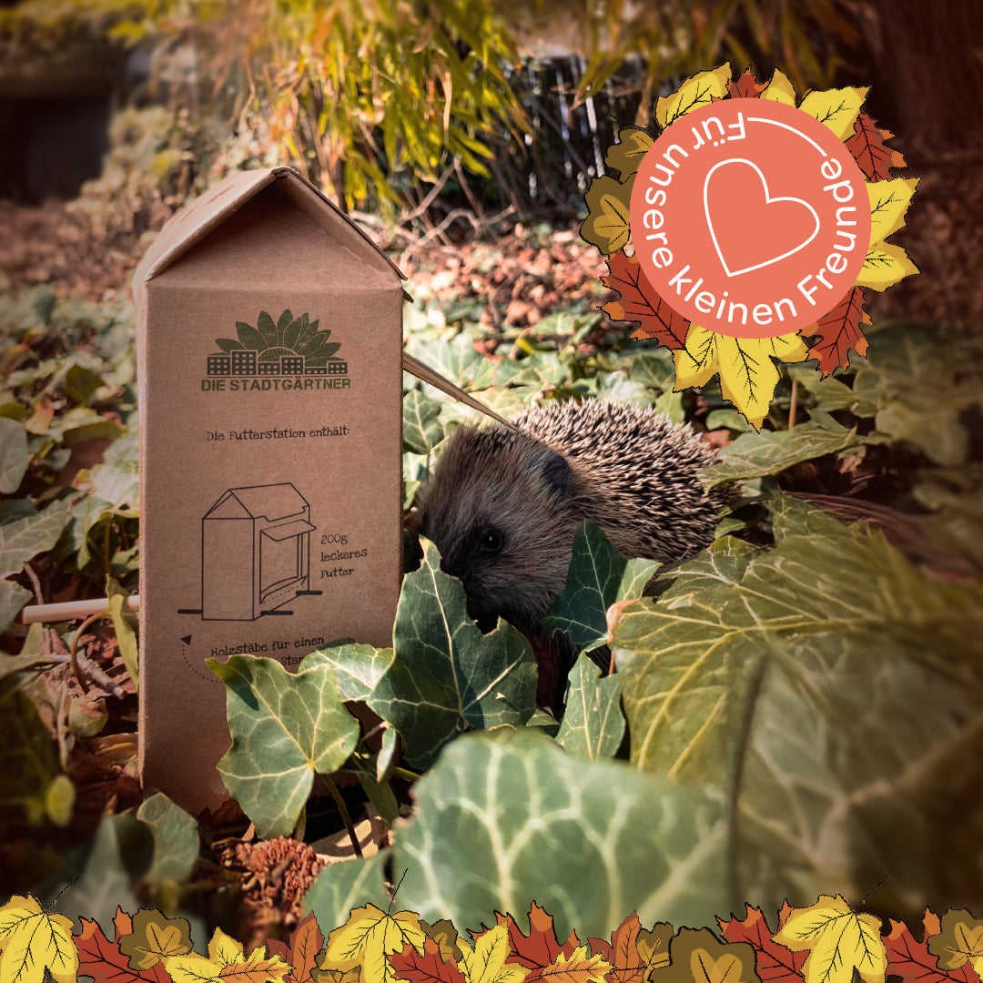 Die Futterstelle aus Naturkarton ist einfach zu befüllen und aufzustellen. Das schmackhafte Igelfutter lässt die stachligen Gefährten garantiert bald antapsen.